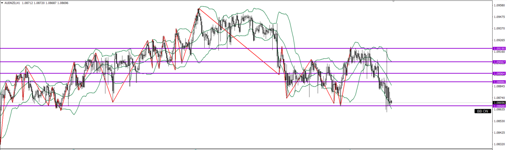 - 日足は上目線Bで1hが下目線に転換したのでC付近まで売り。 4hも下目線でミドル超えているので抵抗されない。 1hが上に転換しそうなのでステイ