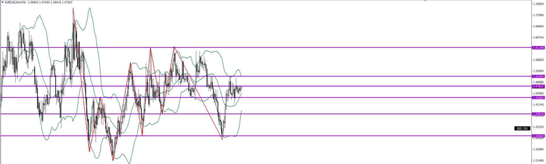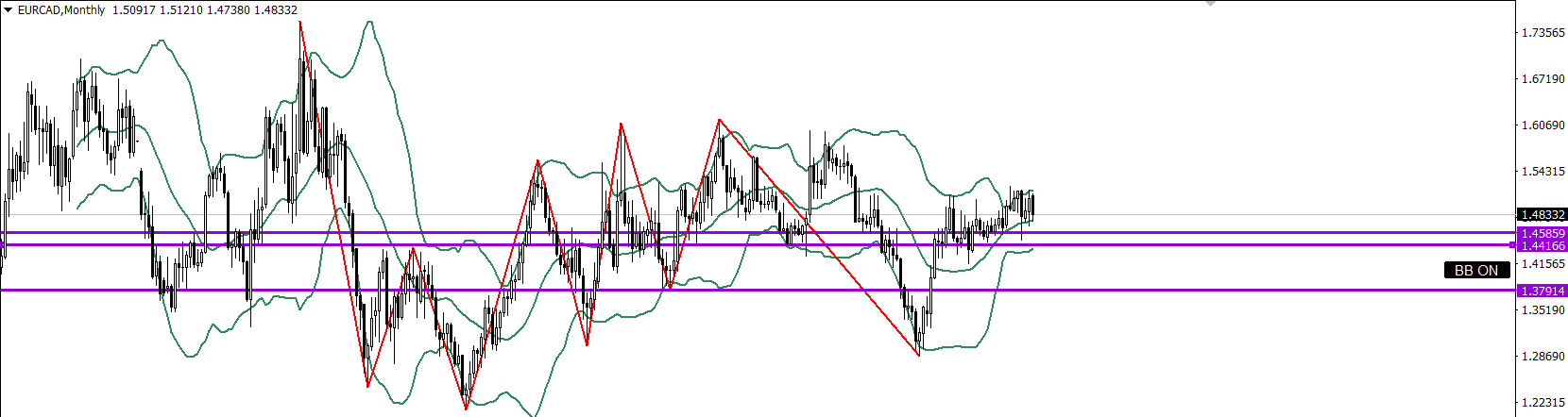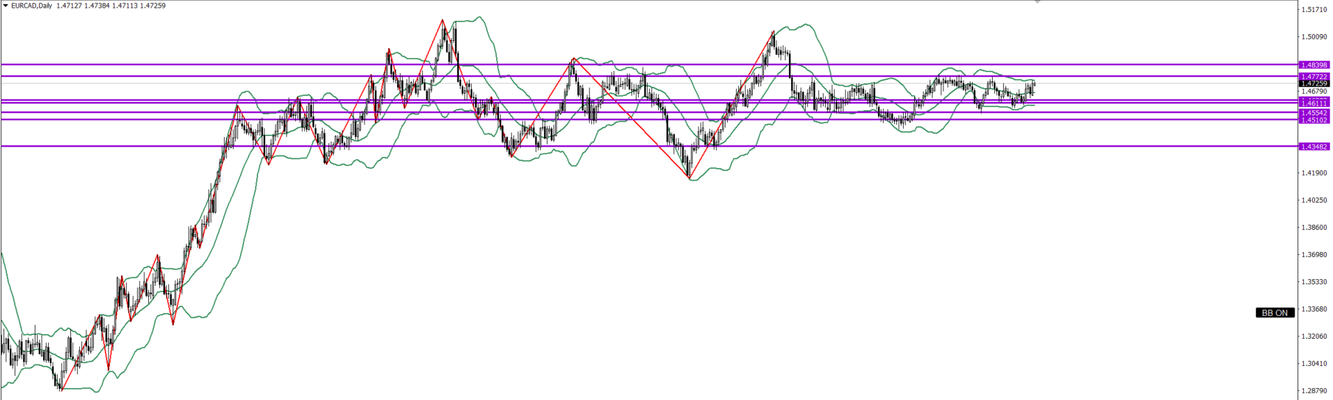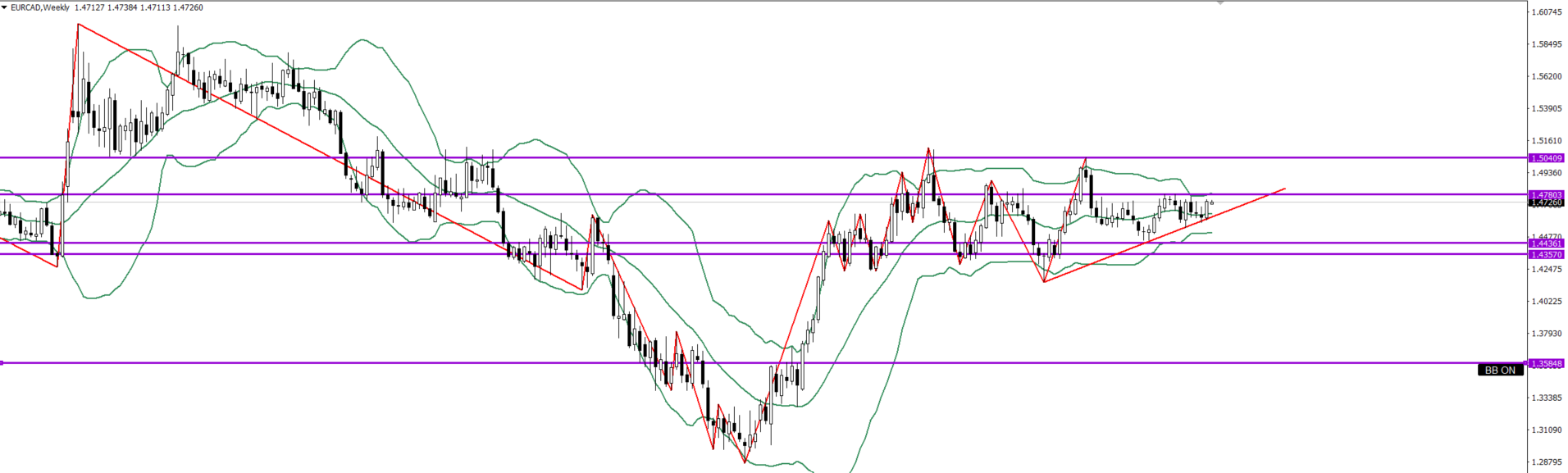 ・週足は上目線Cで、レンジになっているのでミドル付近まで買い