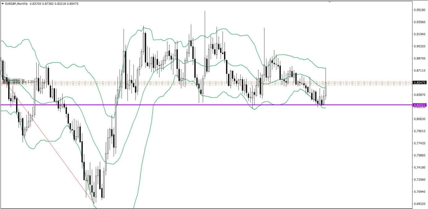 ・月足は下目線Cで3点目をつけてるのと、ミドル超えているので買い