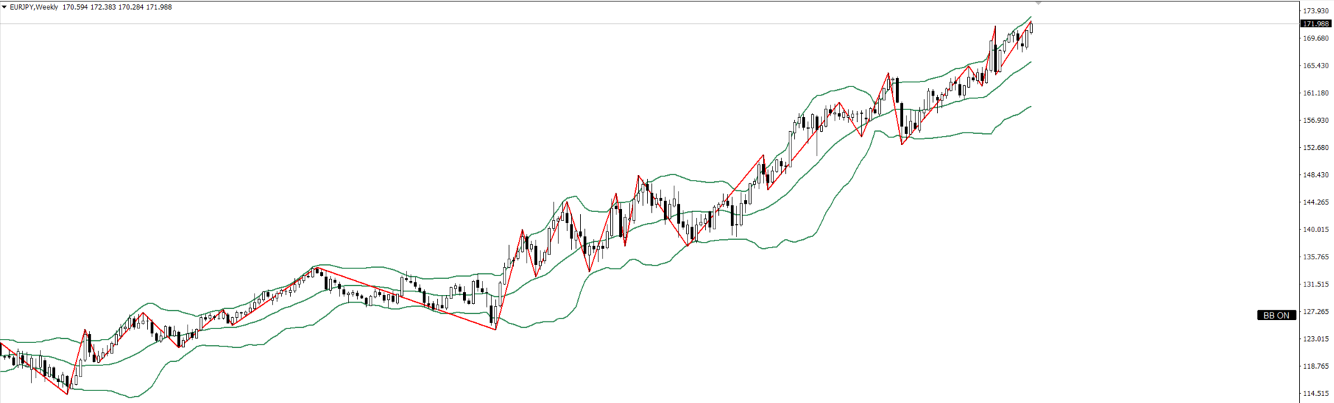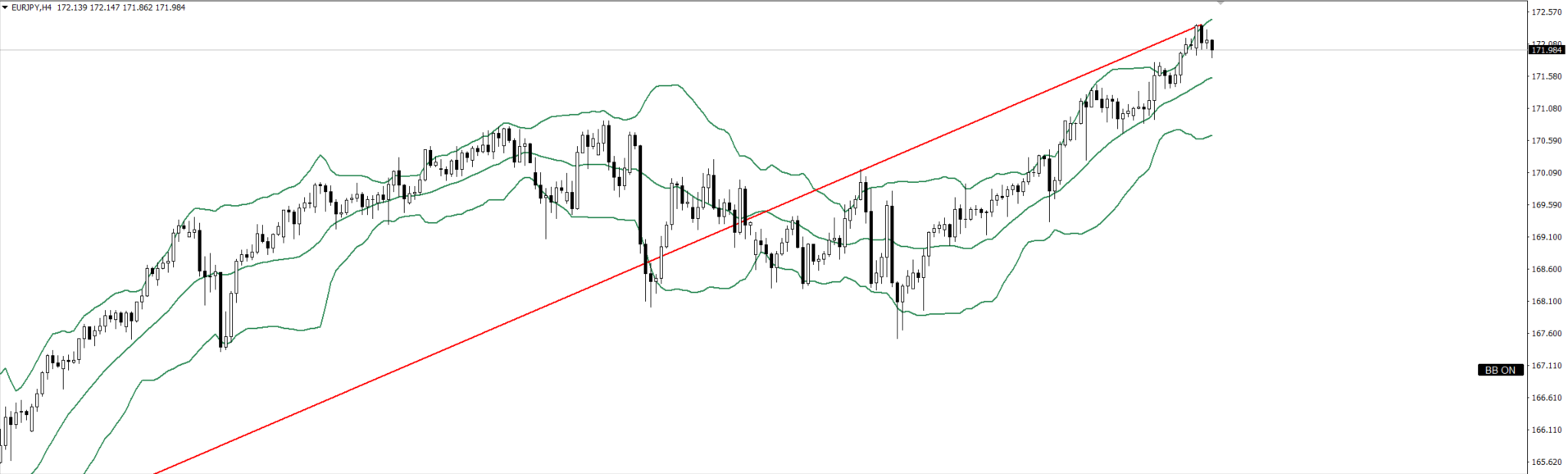 2024/06/28 EURJPY 分析のみ(デモ) 環境認識 月足 目線 未確定 週足 目線 未確定 日足 目線 未確定 分析結果 ・日足・週足・月足はA未確定でバンドウォークしているので、買い 4h、1hが上目線だが、30m、15mが切り下げそうなので、切り上げてから買い チャート分析 EURJPY 月足 EURJPY 週足 EURJPY 日足 EURJPY 4h EURJPY 1h EURJPY 30m EURJPY 15m