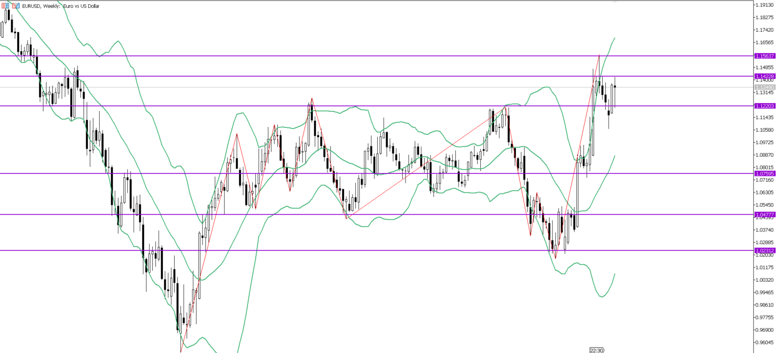 ・週足は上目線Aで、左肩で一度止まるか確認してから買いか売り(4hバンドウォーク初動になるか確認)