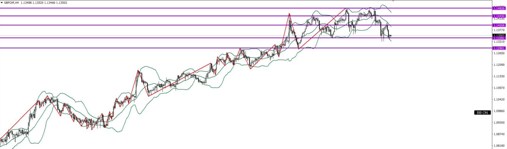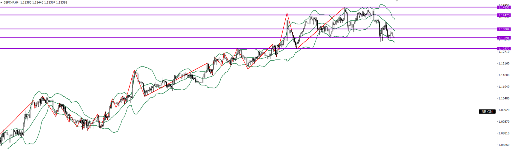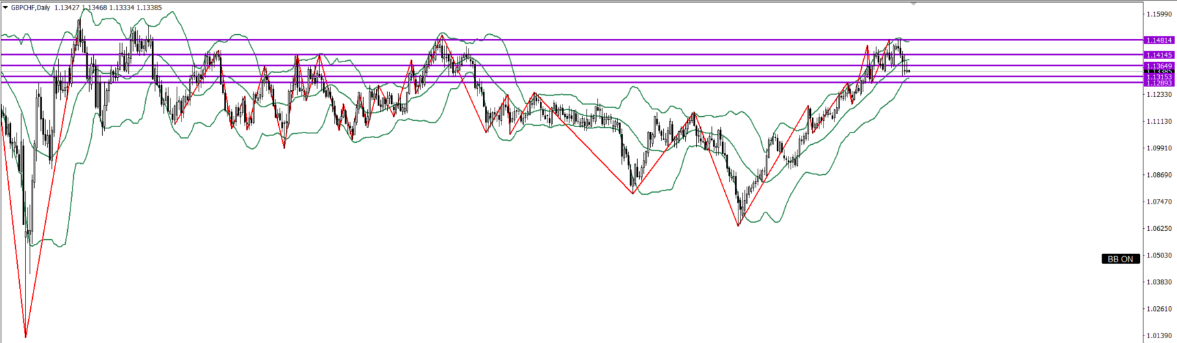 - 週足は下目線Bで、4hが上目線に転換したのでC付近まで買い。 日足上目線で、ミドル超えていないので日足のミドルを実体で上に抜いたら買い。
