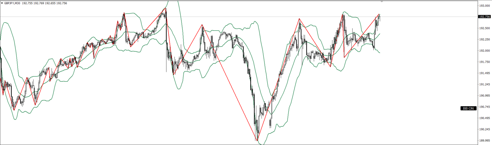 ・4hは上目線Cで30mが下目線に転換したので売り⇒Cまで到達しているので、待ちor買い⇒30mが上目線に転換するまでステイ