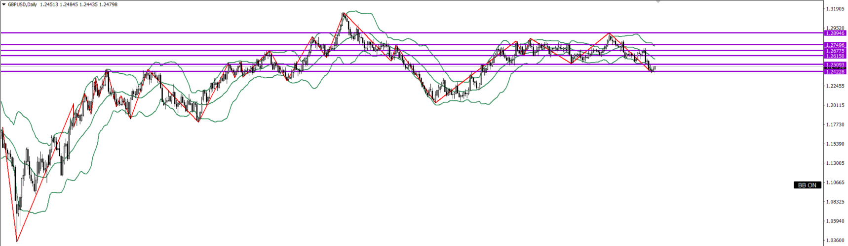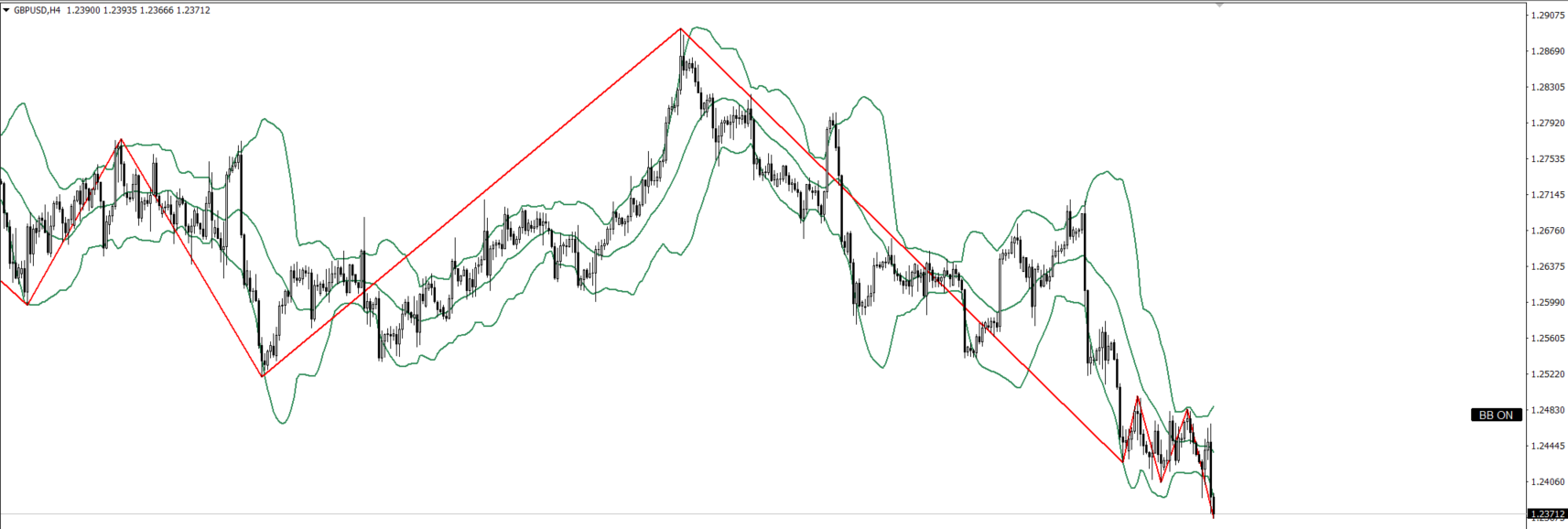 - 日足は下目線Bで1hが上目線に転換したので日足ミドル付近まで買い。 4hは下目線でミドル超えているので抵抗されない。