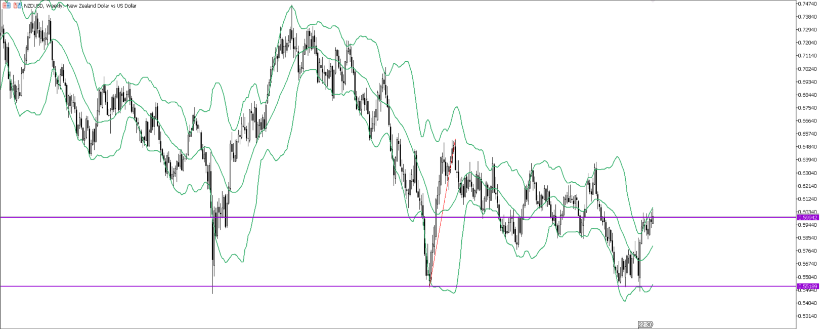 2025/06/02 NZDUSD分析のみ(デモ) 環境認識 月足 目線 上D 週足 目線 上C 日足 目線 上B 分析結果 ・日足は上目線Bで、レンジ+3点目+トリプルトップなのでミドル付近まで売り ・週足は上目線Cで、トリプルボトム形成して上がってきているが、現在の価格付近で止められているので、4hのふくじ転換で売り ・月足はミドル付近なのでステイ 月足に従ってステイ→月足が下に抜けたら売り チャート分析 NZDUSD 月足 NZDUSD 週足 NZDUSD 日足 NZDUSD 4h NZDUSD 1h NZDUSD 30m NZDUSD 15m