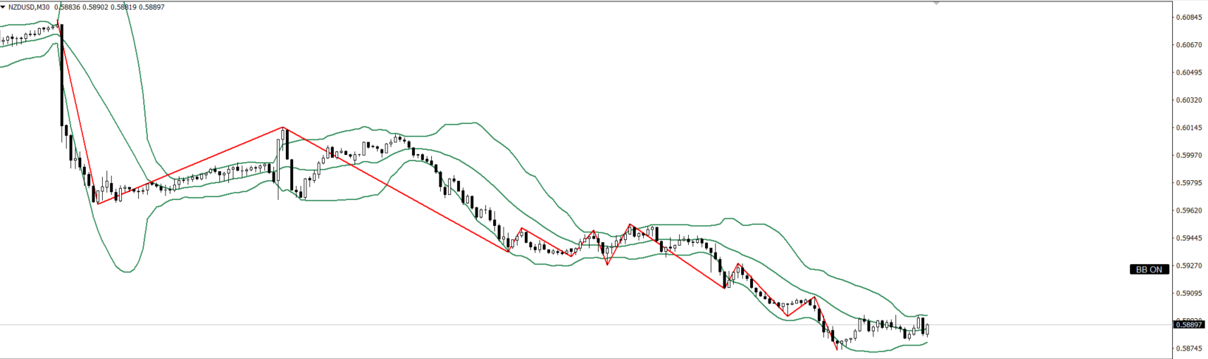 - 週足は上目線Dで4hが下に転換したので全戻し付近まで売り、日足は下目線でミドル超えているので抵抗されない。 週足ミドルが上向きなので、-2シグマまで売り。-2シグマまで到達しているのでステイ