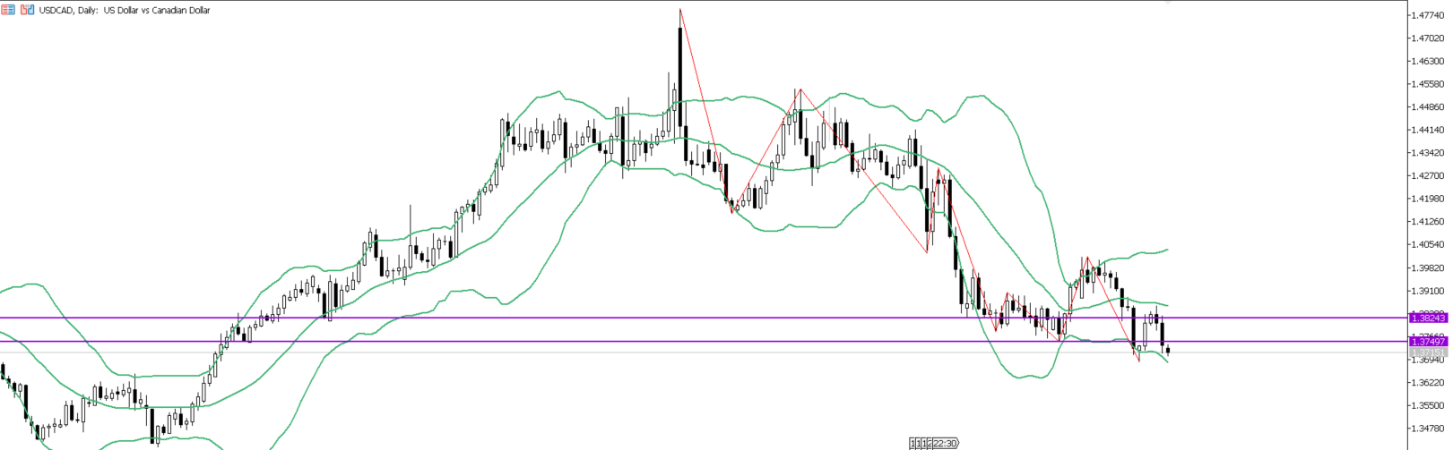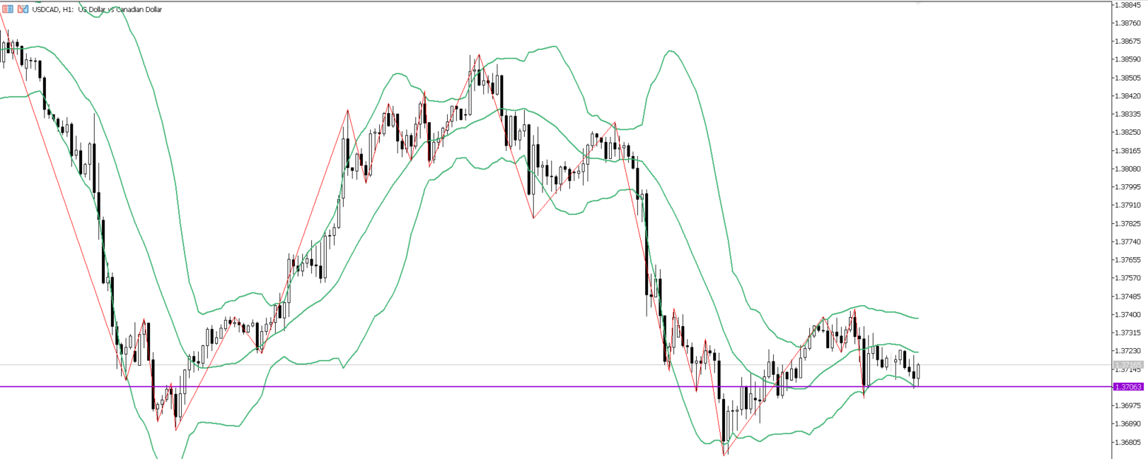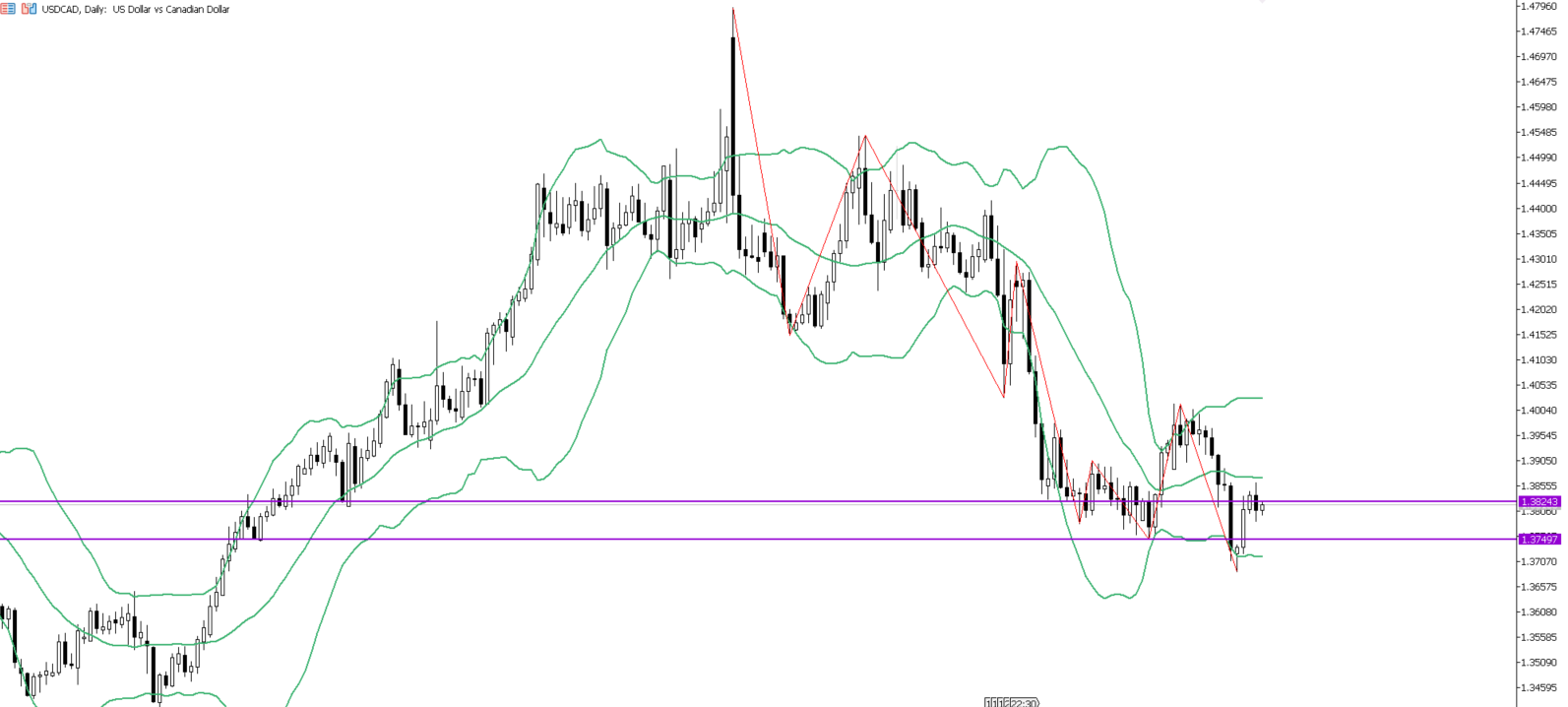 月足は上目線Dで、ミドル付近にいるので、ミドルを下に抜けたが、ラインに当たったのでステイ