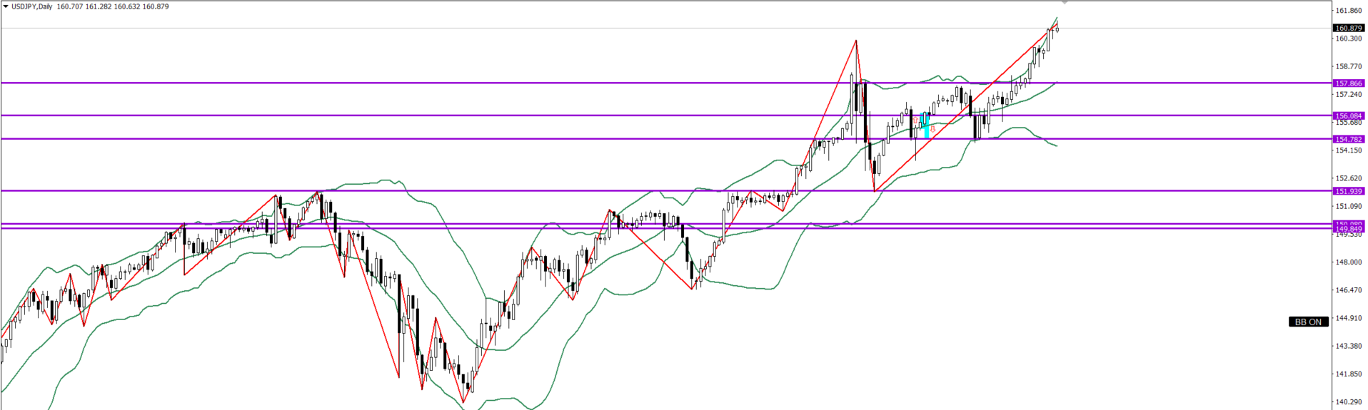 日足は上目線Cで157.866付近まで買い
