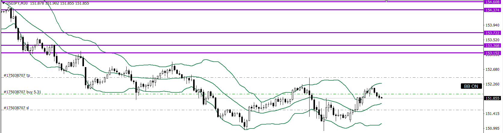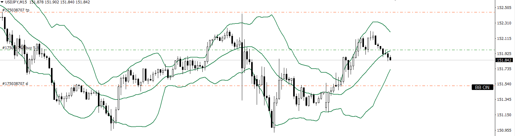 月足は上目線Dで前安値の全戻しのラインまで戻ったのでミドル付近まで買い