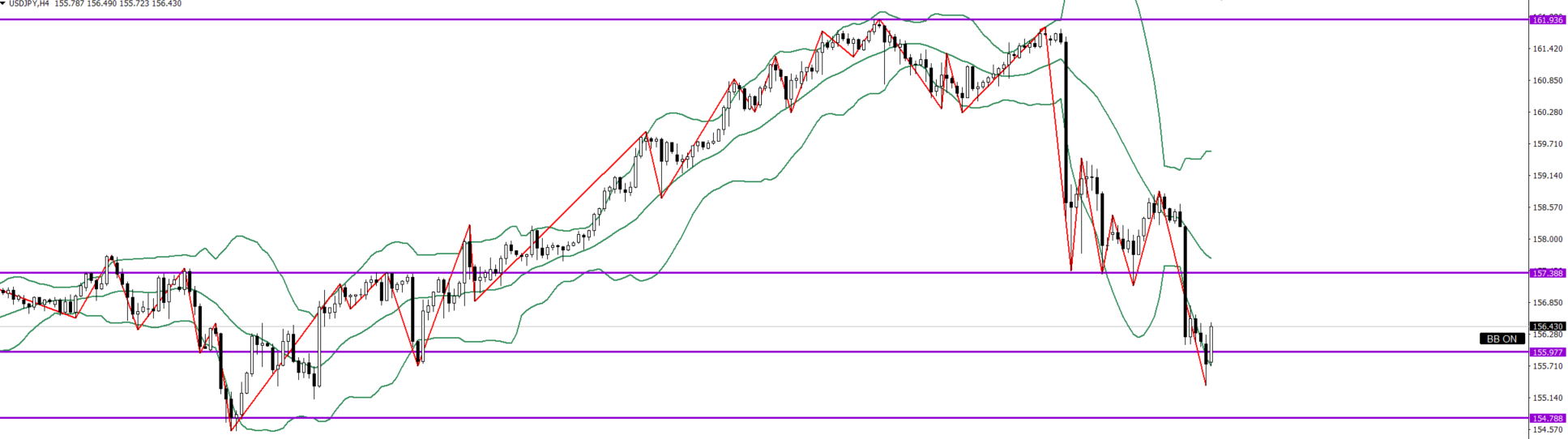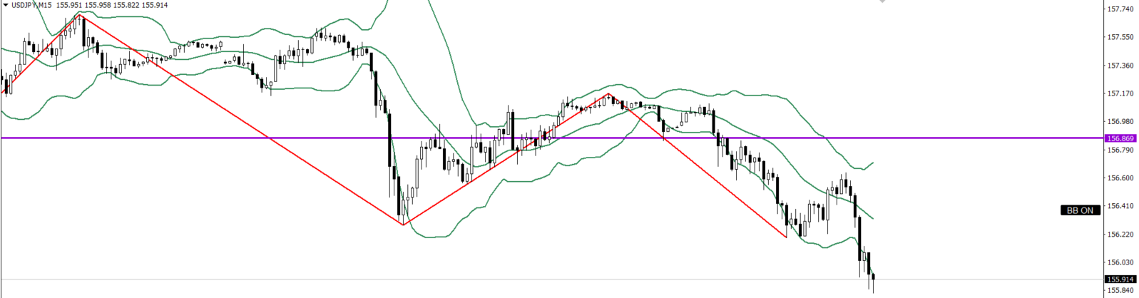 ⇒上がり切れず156.535でずっと止められていて、落ち始めたので、1h全戻し付近まで売り