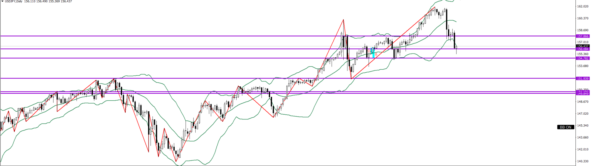日足は上目線Cで157.866付近まで買い
