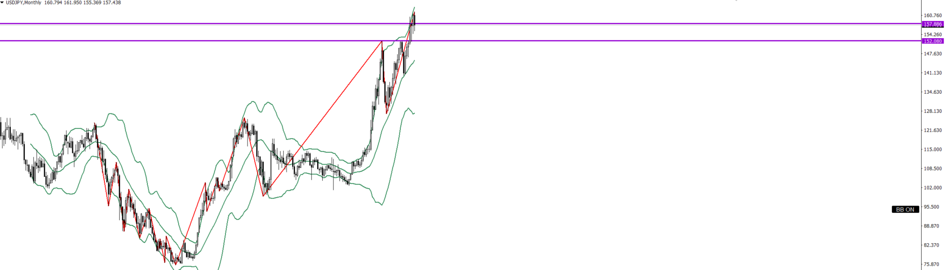 週足は上目線Cで157.888付近まで買い
