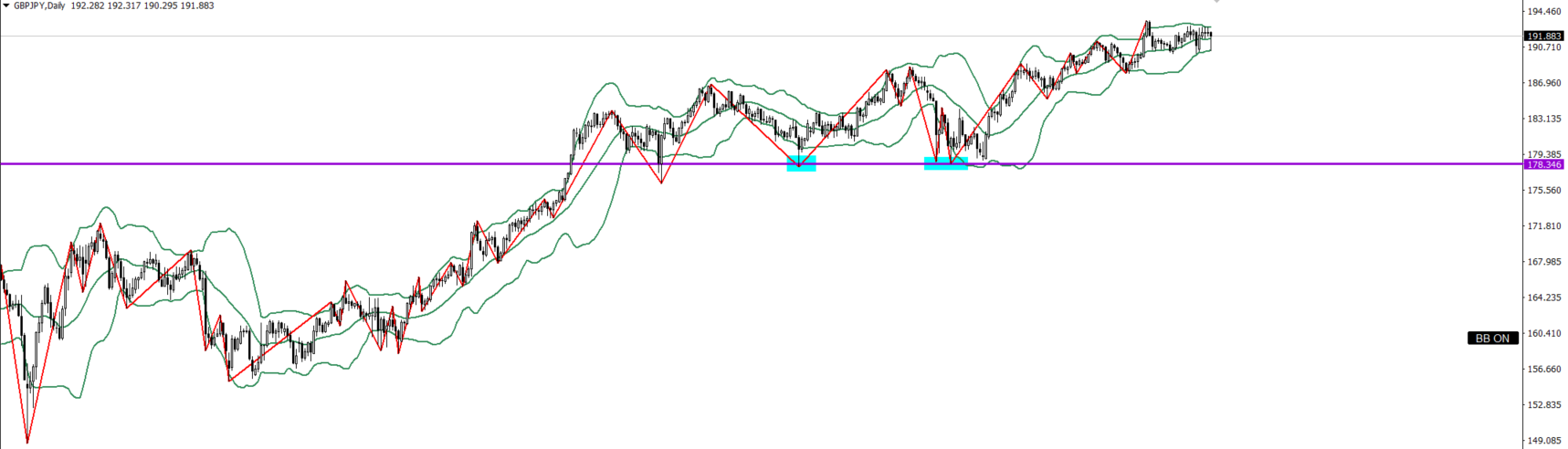 □部分のように、同じところで何度も止まっているところは狙い目。 この場合、売りでエントリーした人が、何度も同じところで止まっているラインで利確をして、 買い注文が大量に入り下がっている。 特にこのラインの3点目以上は狙い目なので、3点目まで引き付けてで売りで入る